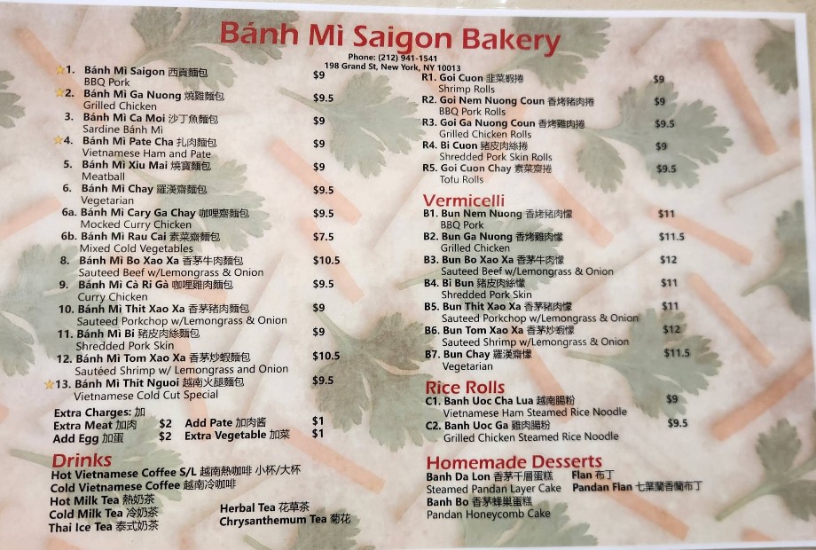 Yum yum yum! whenever I'm in New York City I by Bond me Saigon and get the number 13 Vietnamese special cold cut sandwich which is delicious. Often I order one "for today" and a couple "for tomorrow" so that I have a couple to take home.